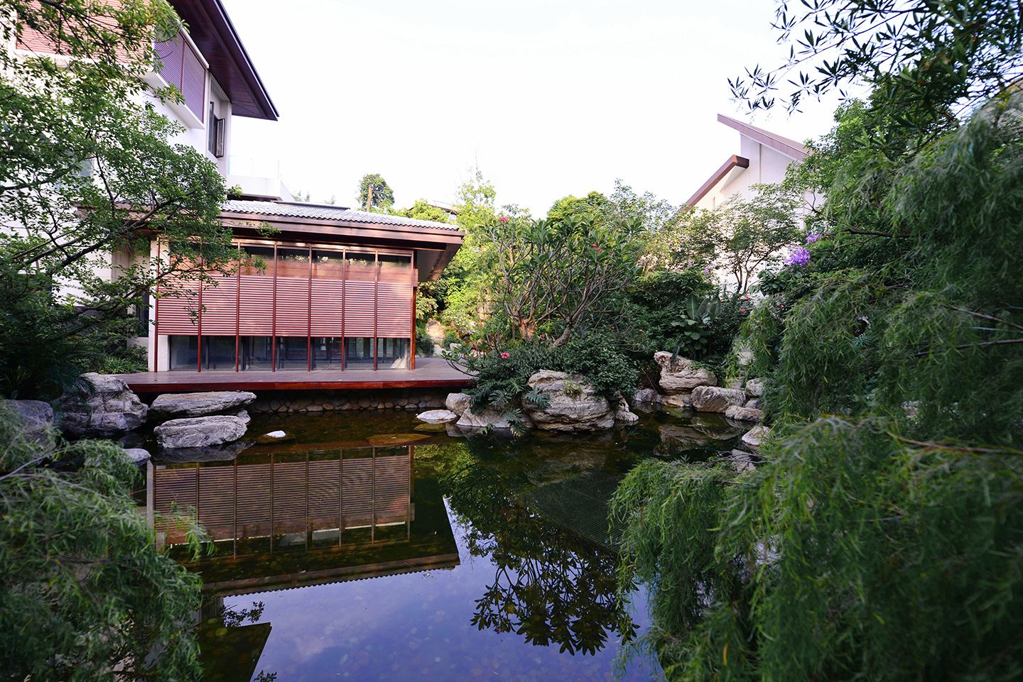 大一山莊作為現(xiàn)代化高端人居環(huán)境建設(shè)項(xiàng)目,其動(dòng)人之處在于獨(dú)特的人居環(huán)境藝術(shù):形依建筑,神歸園林,畫意構(gòu)景,詩(shī)境傳情,有法無(wú)式,式在理中,其基本造園藝術(shù)特征可概括為“南國(guó)詩(shī)境,靈秀自然”。
