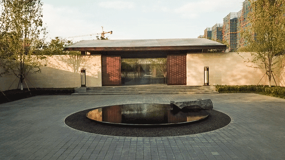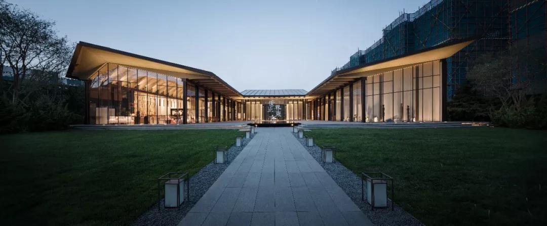透過(guò)售樓部的落地玻璃,感受高山流水的神韻,中式造園藝術(shù)中框景的美感,將山水景象留于畫卷之中,也映襯“合要淵永”的中式美學(xué)。