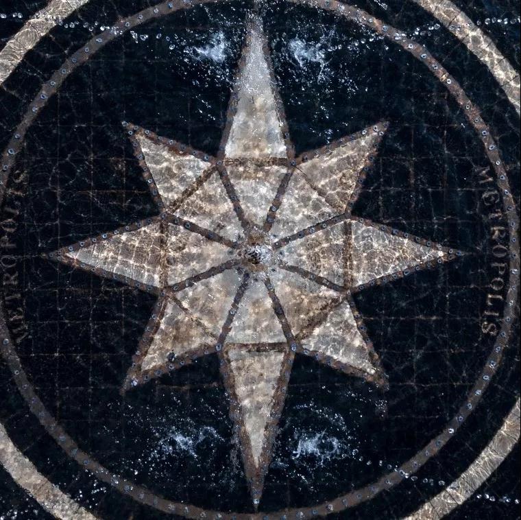 八角星元素作為水池底部花紋,當陽光透過波光粼粼的水面照射到八角星的紋理上,恍若可以看到寶石般的光芒。