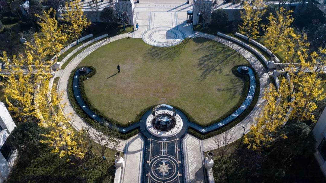 在項目的植物配置上,我們選擇了圍繞著中央水景種植銀杏,其種植概念來源18世紀莊園內(nèi)的陣列種植。金黃的樹葉浸染整個項目示范區(qū),和米黃色石材形成色彩對比,類比紐約中央公園15號上空的建筑與美景,也類比大都會的藝術(shù)自由生活。