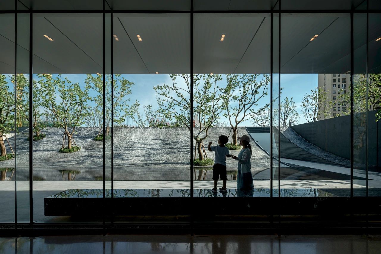 會(huì)在通廊中產(chǎn)生各種隨機(jī)的表情——或是陽(yáng)光下的水光紋,或是傍晚的斜陽(yáng)水紋,或雨天頭頂?shù)挠晁疂i漪。