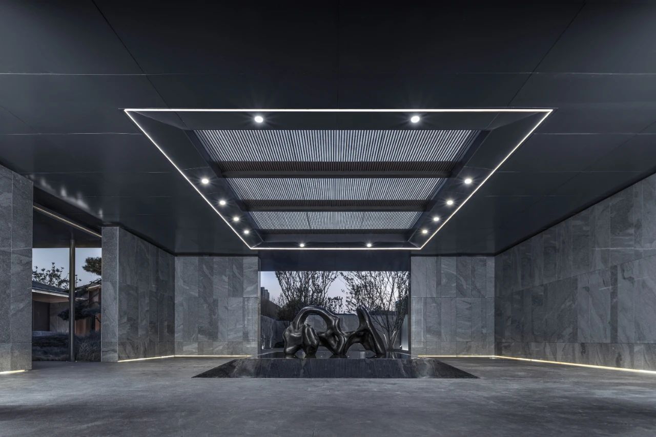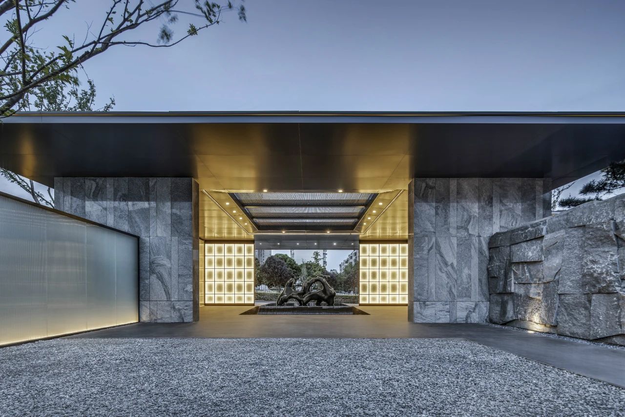 融合極簡美學,長達200米大氣磅礴的城市迎賓回廊屏蔽城市的喧囂嘈雜,向世俗展示沉淀的美。