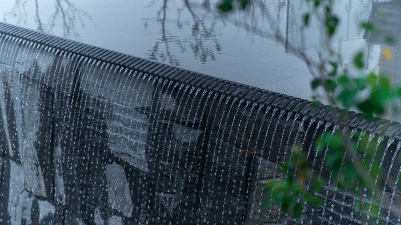 一汪鏡水傾瀉而下,氣勢宏偉、水霧蒸騰,演奏一曲酣暢淋漓的水之樂章,池中倒影著起伏的建筑、逐級栽植的樹木,以及亙古不變的日月星辰。