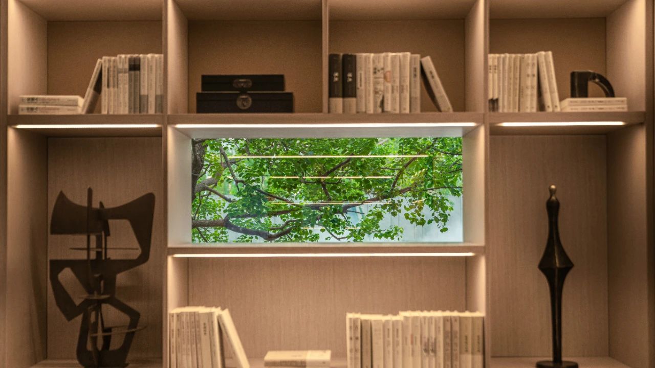 白色的精神空間,如同一扇通往未來的大門,在一汪清潭、樹影婆娑的襯托下,透露出對寧靜美好的神往。