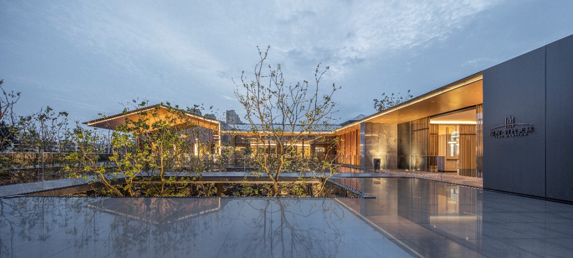 將千年古都的自然山水形態(tài),通過建筑、景觀和室內(nèi)的通用語言,轉化為高山流水的寫意空間,成就一座大隱于市的時代獻禮。