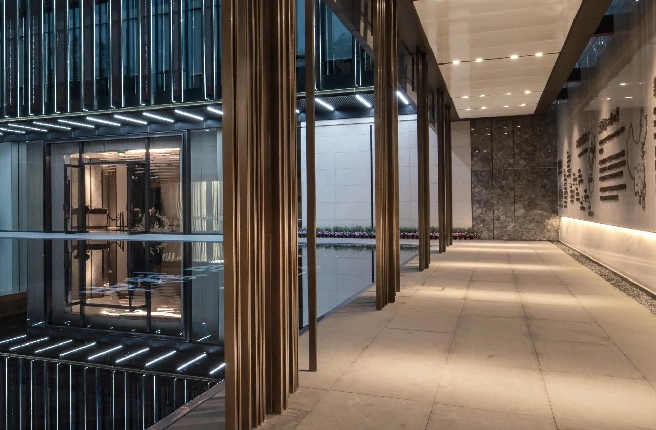 空間的打開方式,敘述空間的情緒。入口以大比例的體塊尺度及簡奢精致的細節(jié),展現入口的輕奢和昭示感,予人震撼之視覺吸引力。