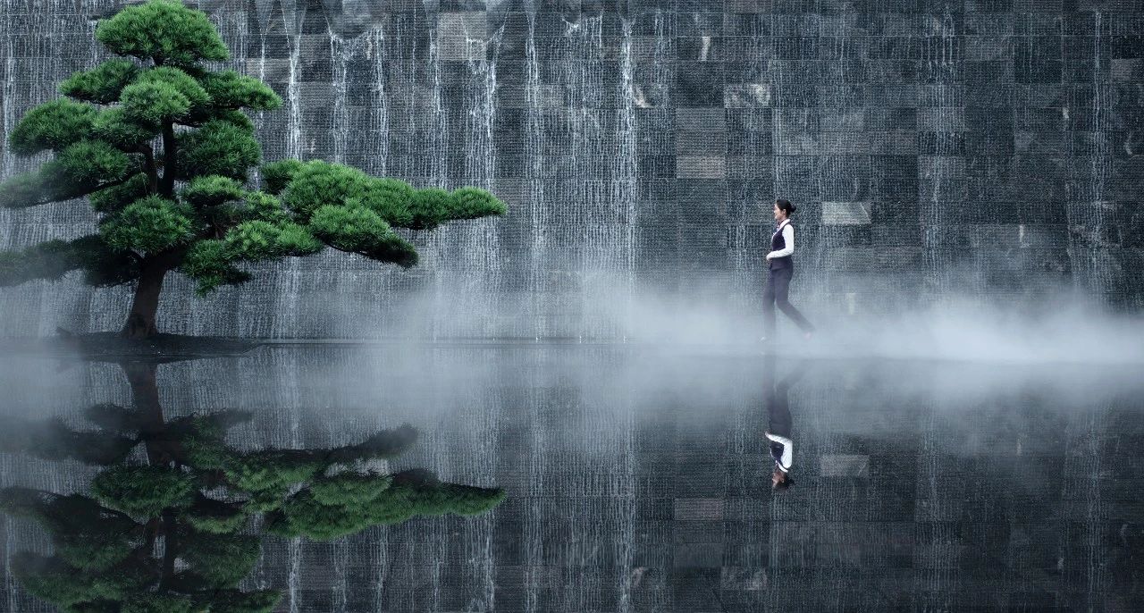 傾聽跌水撞擊墻面的震撼力,柔中帶剛,賦予空間悠閑、包容的性格特征。