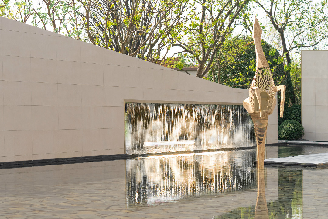 盈盈水面之上,奔鹿雕塑身姿靈動,為方正規(guī)整的中庭空間注入生命與活力。