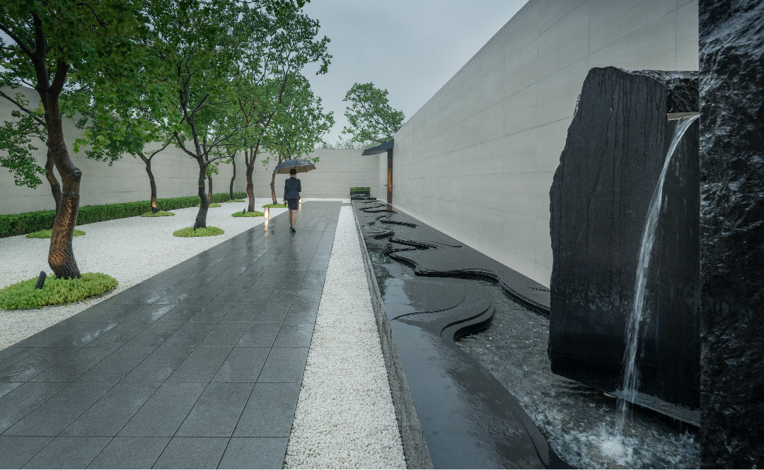 早在千年以前,作為“絲綢之路”中國對話世界的媒介,蘇州的錦羅綢緞已然聞名全球,盛極一時(shí)。我們嘗試提取它,并將其抽象藝術(shù)化,形制解構(gòu)、境制重組,賦予到前山瀾庭景觀當(dāng)中。