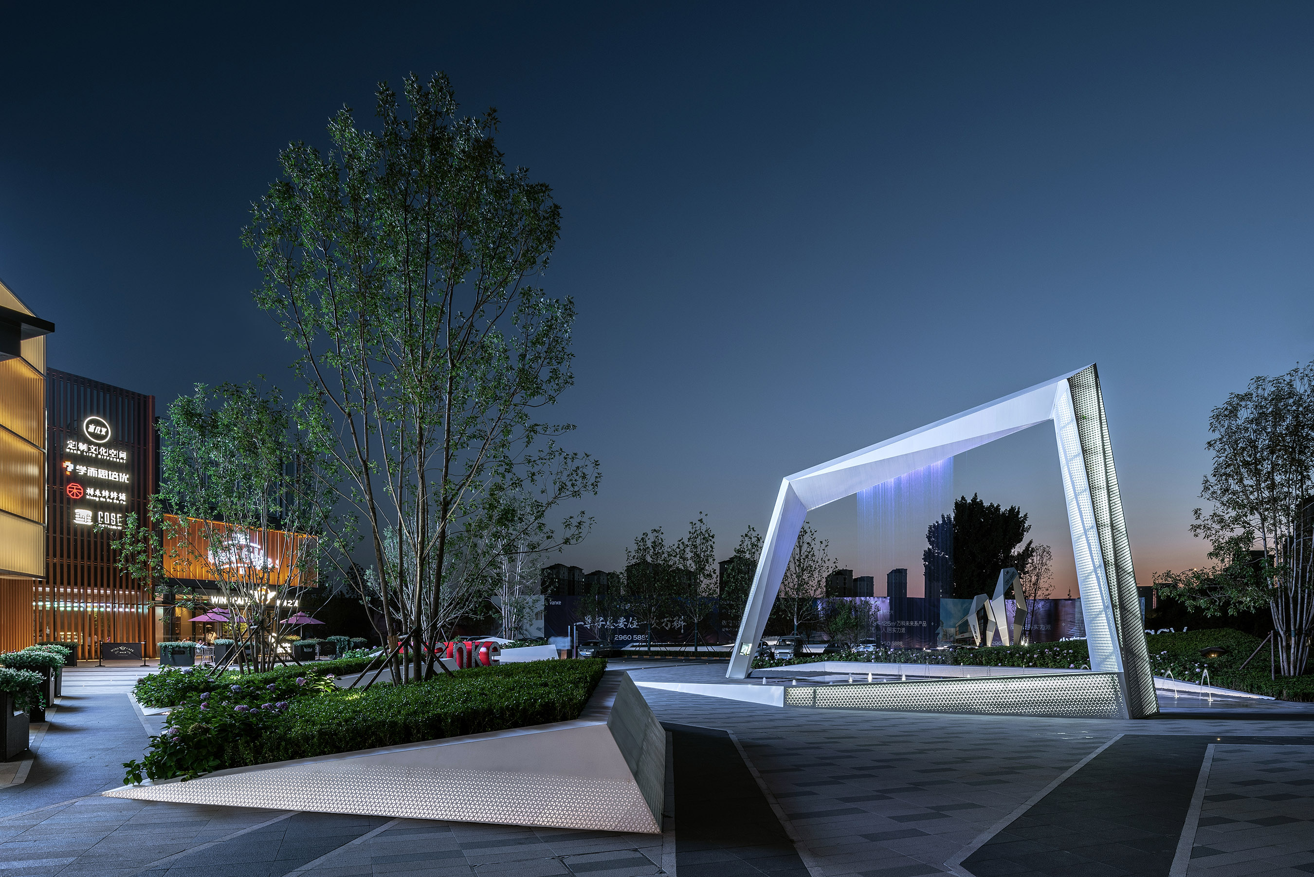 輕盈直下的水幕、現(xiàn)代感的街角藝術(shù)、夜晚炫彩的燈景,吸引各地人們的到來和參與,成了一道公共的靚麗風(fēng)景線。