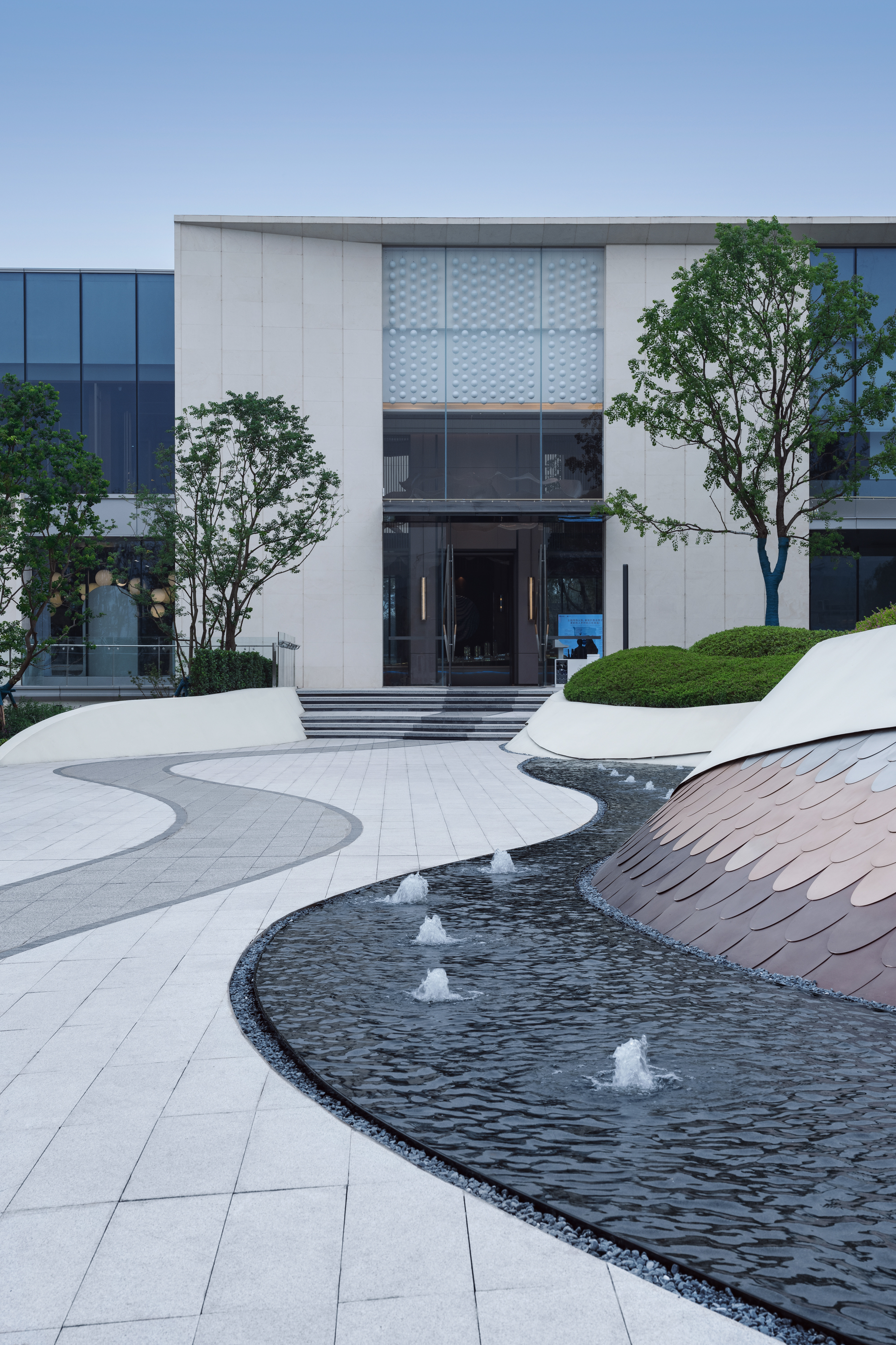 藝術(shù)置石點綴其間,如置身于溪澗旁。