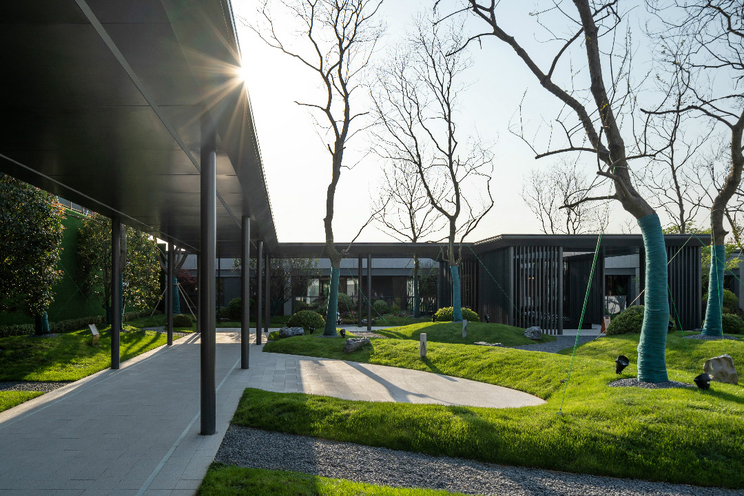 形成一個(gè)背景與前景交互的秩序空間,猶如觀一幅愜意山水畫。在畫中沿曲折小徑而行,品靜謐的林下悠閑時(shí)光,引人入勝。