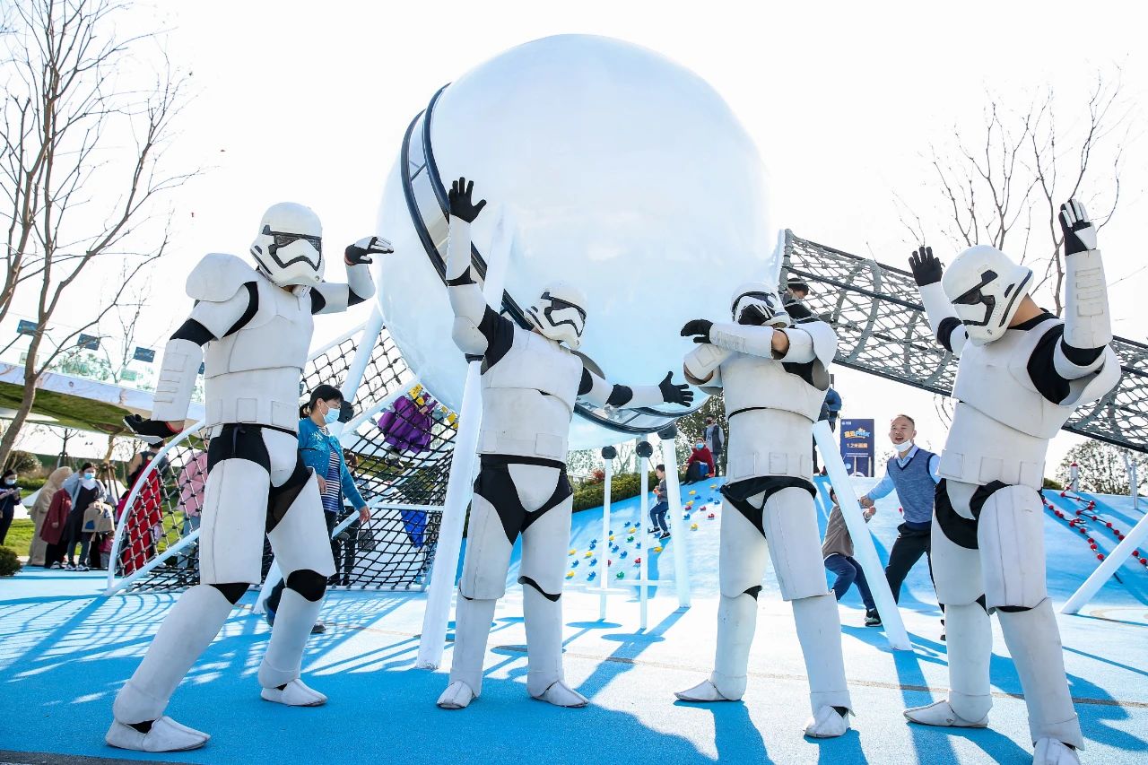 他知道,地球上的小朋友最喜歡對著流星許愿,他便模擬流星劃過天際的畫面,建造了這座星球樂園里的地上星河。