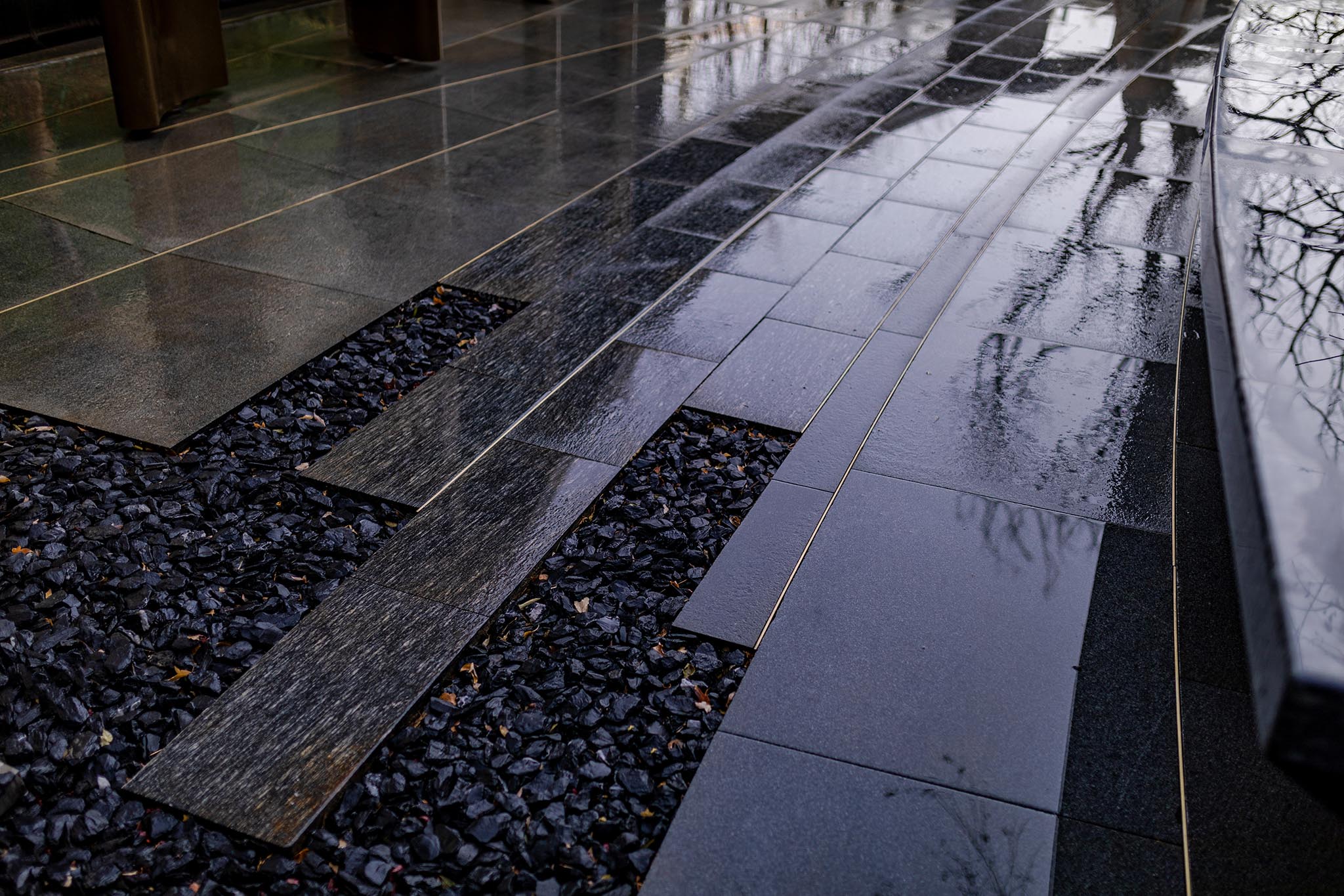 地面鋪裝的組合,取竹簇的形態(tài)發(fā)散聯(lián)想,再造了竹子雖聚生而不相交的“正直”美麗姿態(tài)。