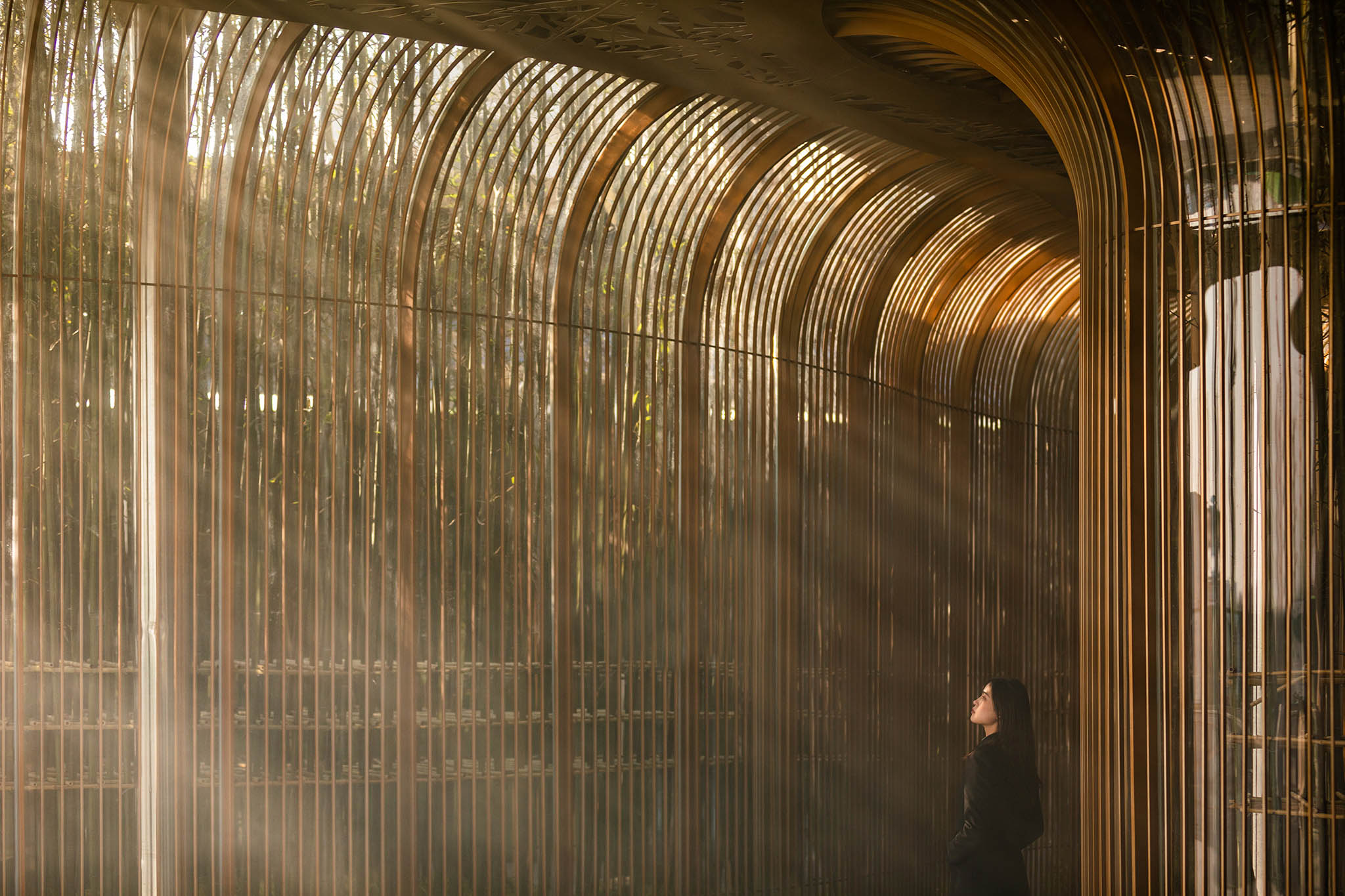 The Bamboo Garden is located in an open city street. In order to reconstruct the atmosphere of the space, the gate breaks the "monolithic" image of ordinary entrances. With a non-traditional "three-dimensional" structure, people can participate in and experience the cloudy and sunny The "container of shanshui" of natural factors such as, wind and rain.