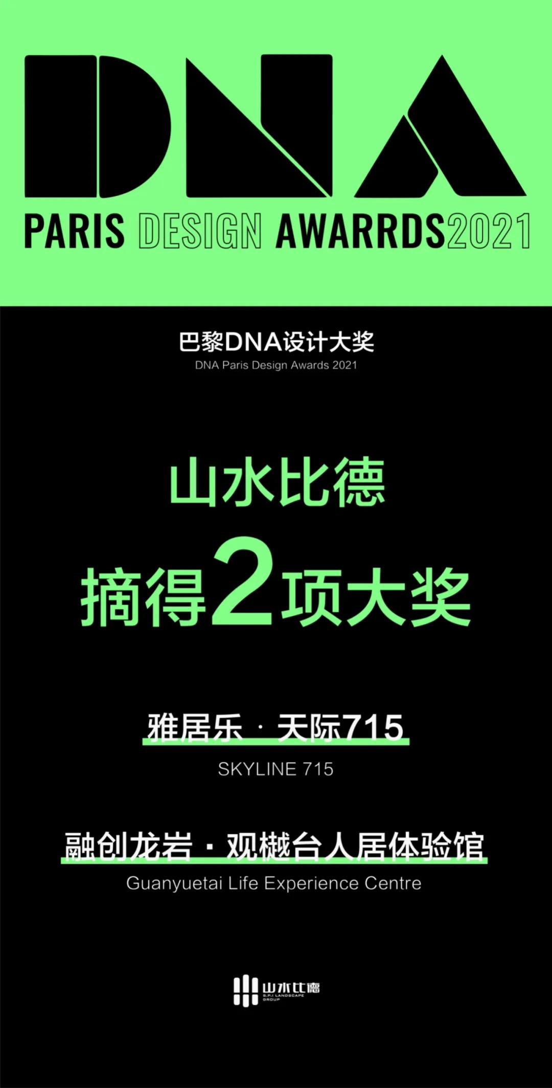 巴黎DNA設(shè)計(jì)大獎(DNA Paris Design Awards),是一項(xiàng)具備全球性和多元文化包容性的國際賽事,包含建筑、室內(nèi)、景觀、產(chǎn)品和平面設(shè)計(jì)領(lǐng)域,吸引來自世界各地的新鮮創(chuàng)意設(shè)計(jì)。在2021年巴黎DNA設(shè)計(jì)大獎評比中,山水比德作品經(jīng)過委員會層層選拔,最終榮獲2項(xiàng)大獎。