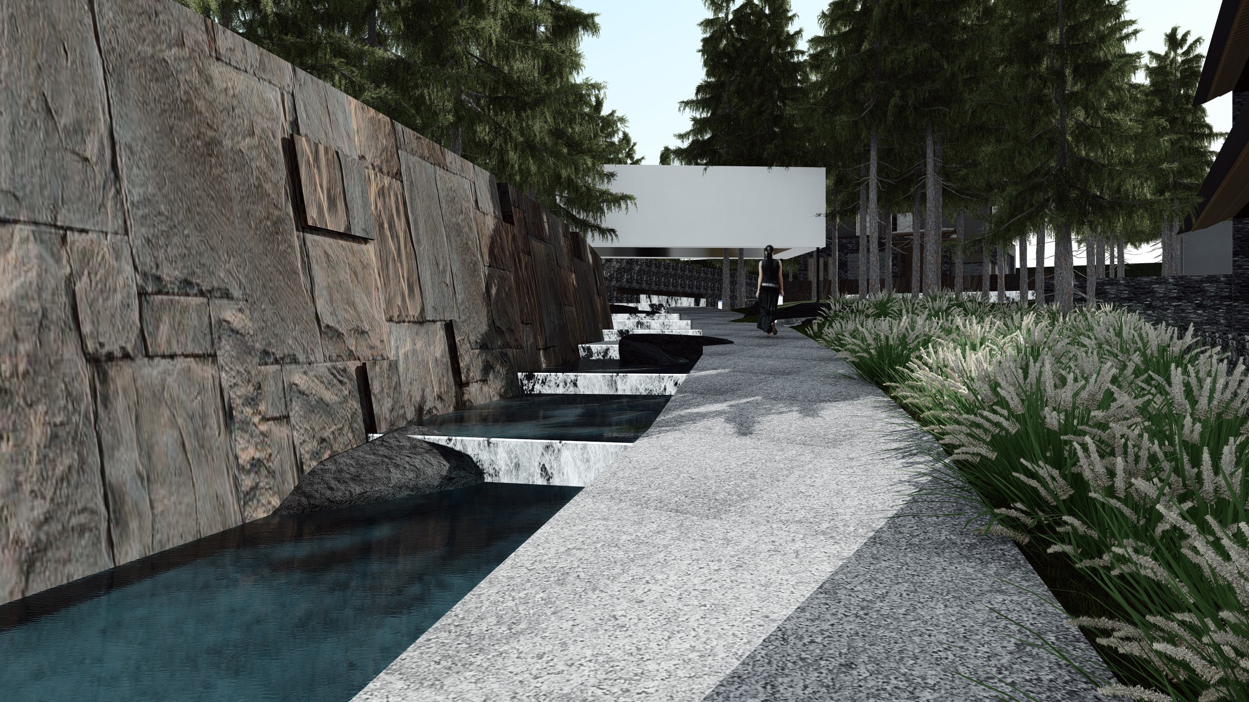 在該項(xiàng)目中,我們將盒子作為精神情感的容器,形成敘事主線,分隔空間,產(chǎn)生獨(dú)特的藝術(shù)植入和場景記憶點(diǎn),尋找山林中自由的精神歸所。誠如亞里士多德靈魂論中提到的“凡是不進(jìn)入感官的就不能進(jìn)入理性”。所以我們力求脫離世俗、植根當(dāng)下,塑造具有場所精神的景觀體驗(yàn)。